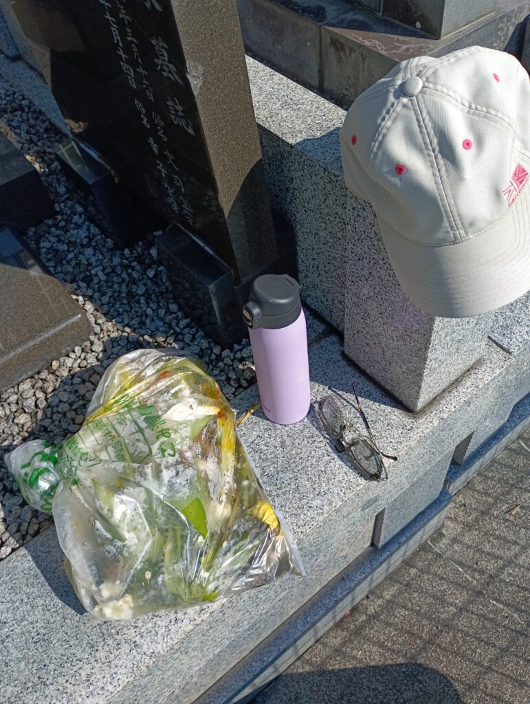 2025.08 お墓参り後の簡易清掃しています